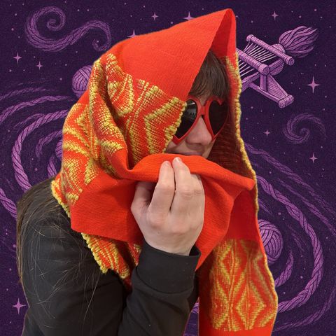 Está tejida por Chispa en telar de 8 cuadros, combinando la simplicidad del tafetán con la profundidad hipnótica de la sarga. La urdimbre y gran parte de la trama están realizadas con lana dralon 2/32 —delicada y ligera—, mientras que en las zonas de sarga aparece una lana acrílica más gruesa (8/6), que le otorga relieve, textura y un aire de misterio.
