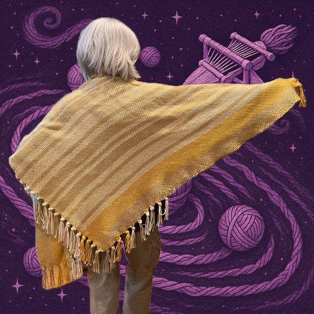 Versión libre de una ruana, con espalda triangular, tejida en telar de peine con lana sintética Ver más detalles
